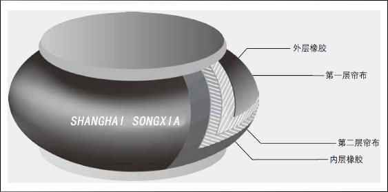 4. 一層壓延橡膠外層膠。 如果對空氣彈簧的耐壓強度有.殊要求,請聯系我們的技術部門,也可定做 4 層加強簾布層 的.殊型號。